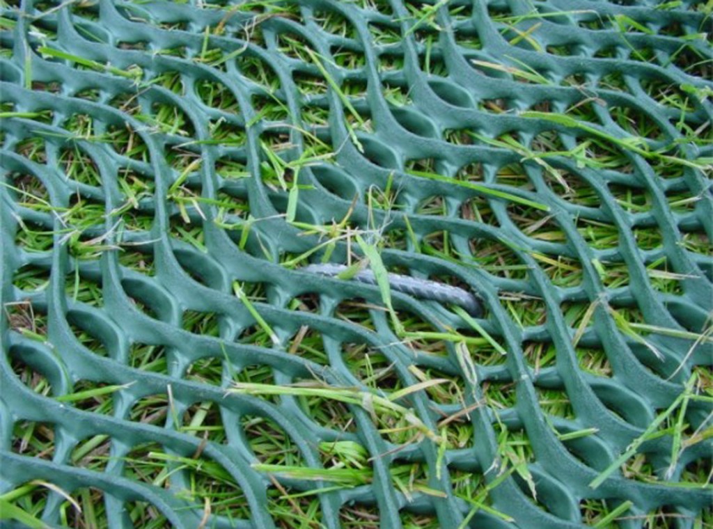 Our Grass Mats are of the highest quality. Manufactured in the UK, they are geo-synthetic, comprised of 100% recycled materials; and are designed to carry weights as high as 20,000 lbs. The purpose of these mats is to place equipment, vehicles, condors or heavy duty equipment on a grassy area without the weight and wheels of the vehicle or carts damaging the lawn. They do so, while allowing the grass access to sun and oxygen, preventing grass burns that would otherwise be created by plywood or dance floor. They are not meant for pedestrian traffic unless installed a week prior allowing the grass to grow through the mesh. The growth of the grass through the oscillated mesh is designed to increase traction and improve slip resistance allowing pedestrians to walk freely about.